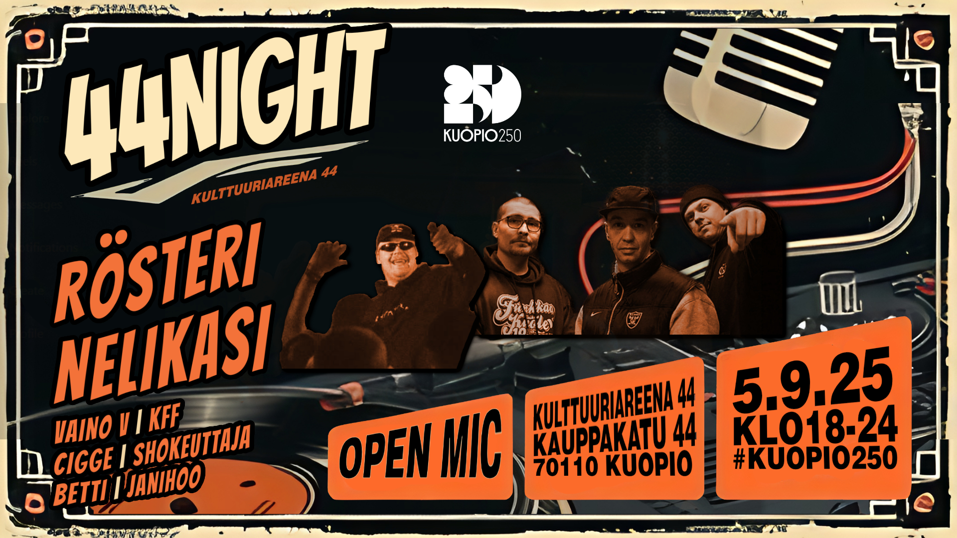 Tervetuloa paikallisten räppääjien ja hoppareiden omaan iltaan kuulemaan voimakasta uutta sanaa ja aaltoa ! Mukana myös vieraita Puijon tornin ulkopuolelta.