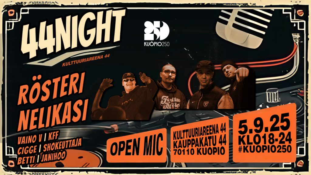 Tervetuloa paikallisten räppääjien ja hoppareiden omaan iltaan kuulemaan voimakasta uutta sanaa ja aaltoa ! Mukana myös vieraita Puijon tornin ulkopuolelta.