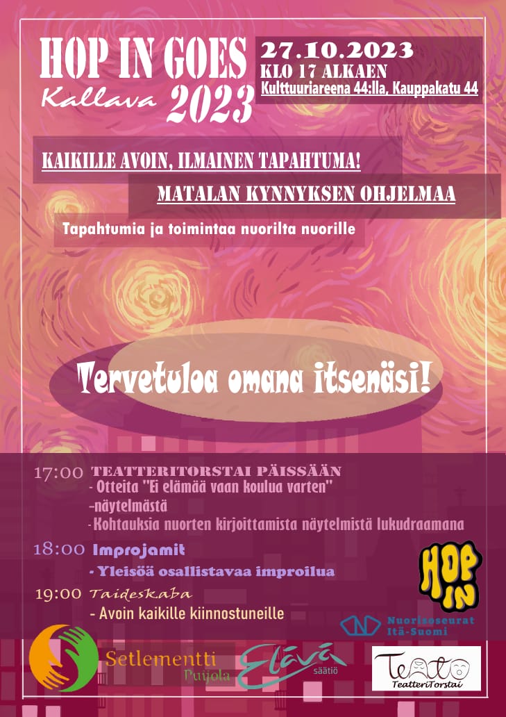 27 lokakuu 2023Kallava nuorisofestivaali toteutetaan Kuopiossa 27.10.2023