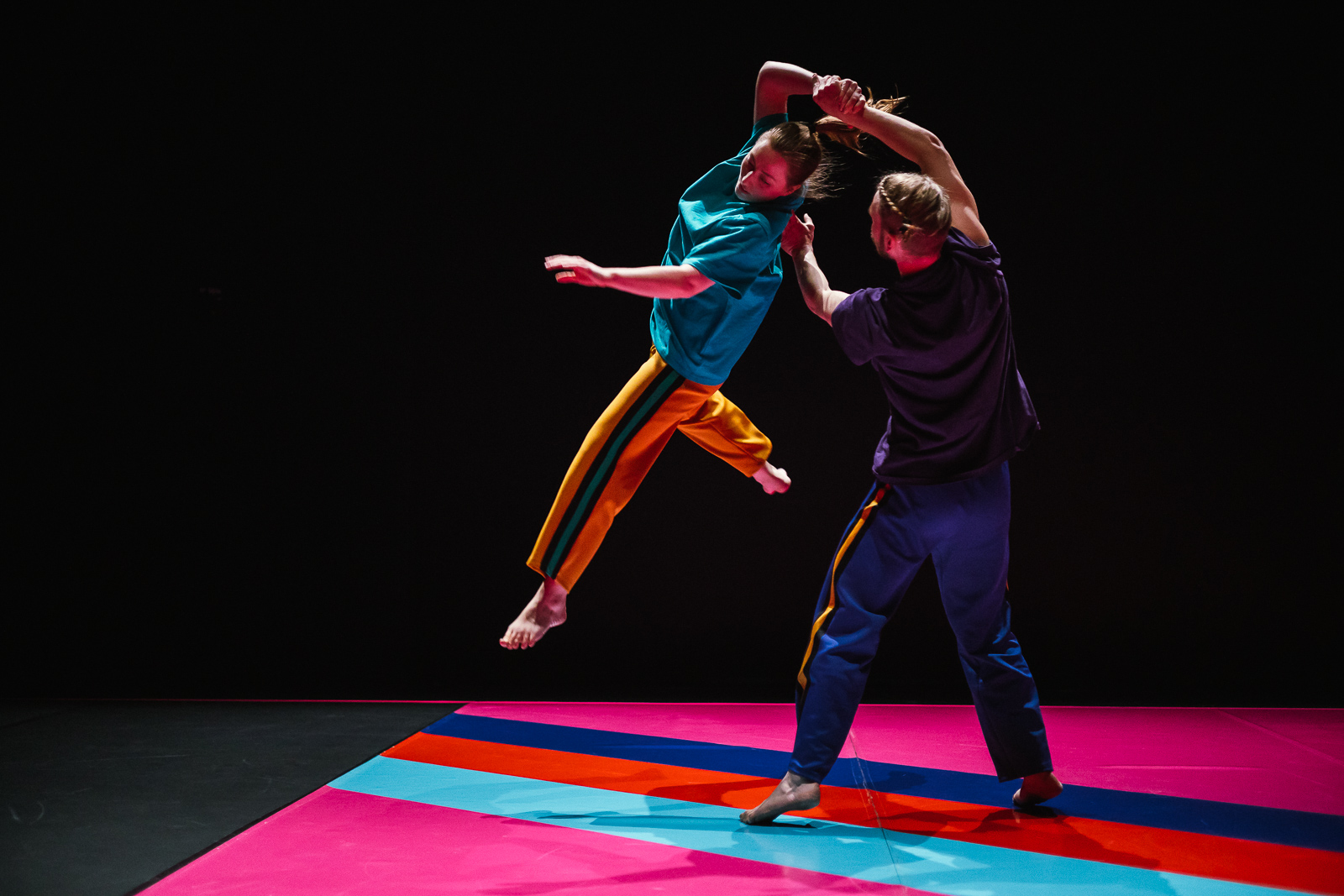 19 kesäkuu 2022Mostly Mass on kehollisen ilakoinnin, soljumisen ja rymistelyn aaltoileva maailma, jossa ihmiskehoa tarkastellaan yhä uudelleen järjestäytyvänä massana, orgaanisena ja mahdollisuuksia pursuavana, sosiaalisena olentona. Teoksessa leikitellään urheilu- ja peliestetiikalla ärsykeväreissä kylpien, mutta toisia lähestytään lempeydellä ja herkkyydellä. Entä jos tärkeää olisikin vain tanssia yhdessä?